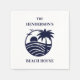 Tillsätt en touch av kustcharme på ditt evenemang med dessa personliga familjehusservetter för stranden. Denna snygga design har ett palmer och soluppgången över havet i elegant marinblått och vitt, mot en krispigt vit bakgrund. Perfekt för en strandhusuppvärmningsfest, en tillställning vid havet eller strandfest, dessa snygga kustservetter kan anpassas med ditt familjenamn för att göra ditt evenemang extra speciellt. En vacker blandning av enkelhet vid havet och sofistikerad stil för din underhållning i strandhuset.