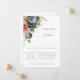 Elegant och enkel typsnittsdesign, bröllopsinbjudan med vattenfärg blommor i nyanser av marinblått och korall med flödande grön bladverk.