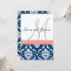 Navy Damask Korall Monogram Bröllopsinbjudningar Inbjudningar