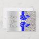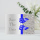 Personliga bröllopsinbjudan "Save The Date"-kort. Eleganta anpassade silver- och marinblå dubbelsidiga platta "save the date"-kort med vacker glittrig tryckt glittermönster, söta blanka tryckta marinblå vektorbildsband och -slingor och snygga, stilrena tryckta diamant-bling-juveler och mörkgrå silvertext på silverfärgad gradientbakgrund. Dessa klassiska, glamorösa och fashionabla silverfärgade formella anteckningskort är dekorerade på båda sidor och tryckta på din valda inbjudanpapper. Vackra, snygga, moderna och dubbelsidiga kort med tjejigt glitter och glamour. Observera: Alla inbjudningar på Zazzel har platt tryckta bilder. Jag har matchande produkter för bröllop i min butik. Text, teckensnitt och typsnittsfärger är alla anpassningsbara för att möta dina behov. Om