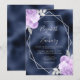 Navy Folie Lilafärg Silver Blommig Bröllop Inbjudningar