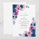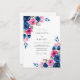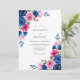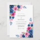 This vibrant design features lush watercolor sprays in a bold palette of navy blue, fuchsia, and soft pink. Delicate anemones and blooming roses are accented by deep green foliage for a romantic and sophisticated look. Perfect for an elegant event, the painterly floral elements bring a touch of timeless charm.