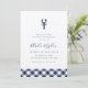 Vår sommarhummerbjudande är perfekt för er havsviken firande! Den klassiska kustdesignen har en marin blå och vit gingham som plaid gräns med en illustration av hummer överst. Anpassa med din repetitionsmiddagsinformation i marinblått brev.