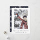Skicka julhälsningar med stil. Detta eleganta och moderna julkort har en fotolayout med vit och marinblå design med "God Jul" i elegant, trendig handskriven kalligrafi-typografi och familjenamn och år i ett klassiskt serif-tecken. Baksidan av kortet är marinblå med ett snöflingemönster.