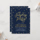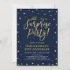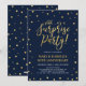 Fira din speciella dag med denna stilrena moderna festinbjudan. Designen har chic guldtexturerad konfetti och kalligrafi med en marinblå bakgrund.