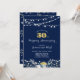 Navy & Gold Night Garden Bröllopsjubileumsinbjudan. Vacker guldtypografi, ljussträng och blomsterkrans.