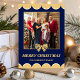 Navy & Gold Bow Scalloped Family Christmas Photo Julkort