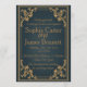 Luxurious navy blue and gold wedding invitation with ornate vintage corners and classic typography, featuring fully editable couple names, ceremony date, time, venue, and reception details for a sophisticated black tie celebration.