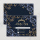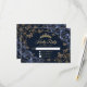 Navy gold floral Quinceanera RSVP reply card. Features, script font, gold butterflies, watercolor roses and tiara. Perfect for an elegant princess style glam celebration. Personalize with your own details.