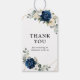 Dark navy blue floral wedding thank you gift tags featuring elegant bouquet of navy blue, royal blue , white , gold, champagne ivory, blush color rose , hydrangea, ranunculus, peony, flower buds and sage green eucalyptus leaves and elegant watercolor with round glitter geometric neutral frame. Please contact me for any help in customization or if you need any other product with this design.