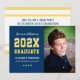 Fira din examen med denna djärva inbjudan till examensfest med överdimensionerade variatecken i årsstil och "Examen"-typografi bredvid en seniorporträtt. Framsidan kombinerar "Grattis till vår"-skript med kraftfull blockbokstav för en livlig, festlig känsla. Baksidan har en koordinerad randig design med alla dina festdetaljer. Fullständigt anpassningsbar text gör det enkelt att anpassa.