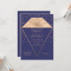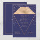 Denna eleganta och unika inbjudan till examensfest är perfekt för en stilren och trendig tillställning. Den har en falskt tryckt guld folie geometrisk diamant ram med guld spridd glittrande konfetti ovanpå en marinblå kant. Det är en chic, modern, snygg och glamourös lyxdesign; det perfekta komplementet till din perfekta dag.