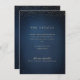 Falskt guldglitter på mörk marinblå bakgrund och sofistikerad monogram för paret på baksidan, Enkelt och elegant. Fantastiskt bröllopsdetaljkort för modern klassisk bröllop och formella bröllop.