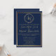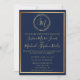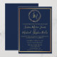 Navy Guld Krans Monogram Kalligrafi Bröllop Inbjudningar