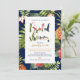 Denna unika tropiska bröllopsdusch inbjudan har ett vackert tropiskt blommönster med en stilren typografi.