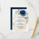 Mörk marinblå blomsterbröllopsdetaljkort med elegant bukett av marinblå, kunglig blå, vit, guld, champagne elfenben, rosafärgad ros, hortensia, ranunkelblomknoppar och salvia gröna eukalyptusblad och elegant akvarell med rund glittergeometrisk ram. Vänligen kontakta mig för hjälp med anpassning eller om du behöver någon annan produkt med denna design.