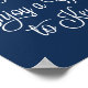 Modern bröllopsskylt med vit, fantasifull kalligrafi på marinblå bakgrund. Andra färger finns tillgängliga. Hitta din plats, njut av ett glas att behålla.