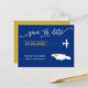 Ni valde en speciell plats för er bröllopsfest. Nu är det dags att fira det med detta minnessaker "save the date"-kort, med en siluettkarta och ett litet plan på väg till er destination. För att flytta hjärtat till platsen för er bröllopsfest, klicka på "personalisera" och sedan "Anpassa ytterligare".