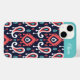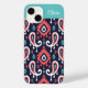 Anpassningsbar med monogrammatiskt telefonfodral med boho ikat paisley mönster i marint blått, korall och turkos färg. Anpassa den med ditt namn eller monogram i ett färgblock ram. Använda designen verktyg om du vill redigera texten typsnitt och färg eller ladda upp egna foton för att skapa en typ av design.