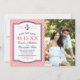 Trendig modern foto vigsel Spara datumet-kort design med en marin ankare-grafik och eleganta kalligrafi-svängar på en trendig diagonal randmönsterbakgrund och ert förlovningsfoto. Klicka på knappen ANPASSA för att anpassa teckensnitt, flytta text runt och skapa din egen unika Spara datumet-kort.