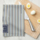 Navy Och Cream Randigt Mönster Monogram Kökshandduk
