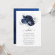 Trendig marinblå och silverros tematisk uppskjuten bröllopsinbjudan med elegant typografi som kan anpassas till din specifika händelse.