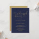 Navy Och Guld Script Bröllopsrepetition Middag Inbjudningar