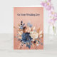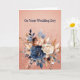 Ett vackert bröllopskort som gratulerar bruden och brudgummen på deras bröllopsdag.