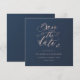 Navy och rosa lövverk fyrkantigt Save the Date Inbjudningar