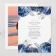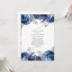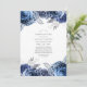 Navy och vit blommig Firande Av Livet-inbjudan med silverfärgad falsk folie och elegant typografi.