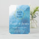 Elegant marinblå och vit akvarell 'spara datum'-kort.