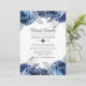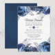 Navy och vita blommor virtuell bröllopsinbjudan för långdistans med silveraccent.