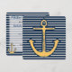 Nautiska gula ankar-ränder marinblå och vita bebisfest-inbjudningar. Söta. personliga. anpassningsbara