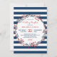 Navy-ränder blommig bröllopsfest inbjudan
