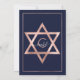 Denna eleganta och moderna Bat Mitzvah-inbjudan är idealisk för ett klassiskt och formellt evenemang. Den har en falskt tryckt gnistrande rose gold glitterkonfetti spridd över en tunn geometrisk diamant- och rektangelkant med en tjock marinblå kant undertill och rosa fyllning vid sidan av rose gold davidstjärnor. Den är chic, lyxig, söt, enkel och trendig; den perfekta designen för din speciella dag.