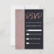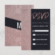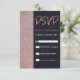 Modern, elegant och enkel ljus rose guld glitter och mörk marinblå färgblocksmönster, RSVP-kort. Denna klassiska och sofistikerade design är perfekt för alla stilrena och trendiga evenemang, inklusive bröllop och vardagliga tillfällen. Personifiera med ditt eget meddelande på framsidan samt en anpassad monograminitial på baksidan. Alla fotoutskriftsdesign.
