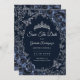 Navy Blue and silver Quinceanera celebration Save The Date card. Features, script font, butterflies, watercolor roses and tiara. Perfect for an elegant princess style glam celebration. Personalize with your own details. Printed Zazzle cards or instant download digital printable template.