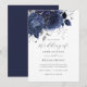 Navy Silver Floral Rose Wedding Inbjudningar