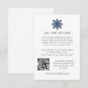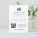 Designad för att samordna med vår Eleganta Snöflinga Vinter Bröllop samling, har denna eleganta snö-tema bröllopskort-mall en liten snöflinga i minimal stil i marinblå som toppar dina anpassade textboende detaljer och qr-kod.