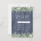 Navy Trä Eukalyptus Bröllop Svarskort | Rustikt Botaniskt Svarskort med Akvarellgrönska | Matchande Bröllopspaket
