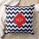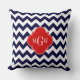 Navy Vit Chevron Röd Quatrefoil 3 Monogram Kudde