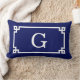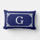 Navy Vit Grekisk Nyckel Ram #2 Initial Monogramm Lumbarkudde