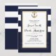 Navy Vit & Guld Ankar Marin Randig Bröllop Inbjudningar