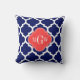 Navy Vit Marockansk #5 Korallröd 3 Initial Monogra Kudde