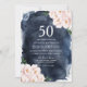Navy Watercolor Blush Blommig 50-årsjubileum Inbjudan