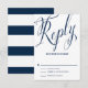 Elegant och modernt bröllop OSA-kort med vismisk kalligrafi-skript i marinen och rand mönster. Detta är en del av en bröllop-svit. Andra färg och matchande artiklar finns i min butik.