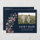 Navy Wildflowers Spara datum med foto postkort. Detta stilrena och eleganta Spara datum Postkort har vackra handmålade akvarell Wildflowers. Hitta matchande föremål i Navy Blue Wildflowers Dreams Collection.