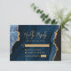 Detta eleganta moderna bröllop RSVP-bifogade kort har en navyblå akvarell-agatbakgrund med falskt guldglitter. Titeln "Var god svara" visas i handskriven script, med anpassningsbar text nedan i guldliknande kopparplåtfont. Baksidan har en matchande navyblå och guld-agat-design.