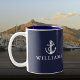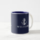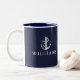 Navyblå anpassad namn nautisk båtankare Två-Tonad mugg