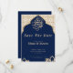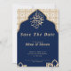 Navy Arabic Muslim Oriental Golden Save the Date har en rik navyblå bakgrund med eleganta gyllene accenter och intrikata arabiska mönster, perfekt för att tillkännage din speciella dag med en touch av kulturell elegans och lyx.